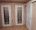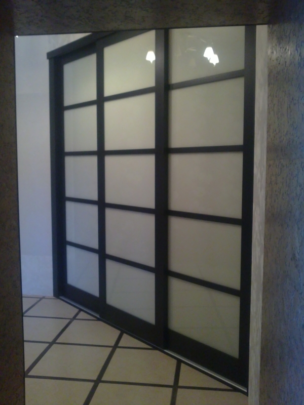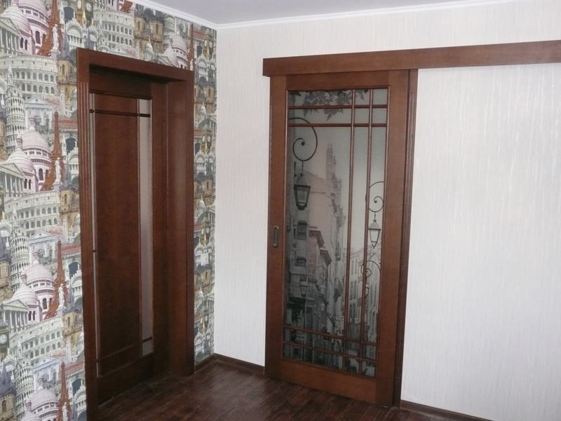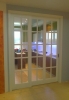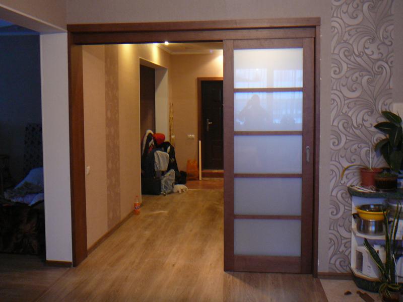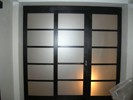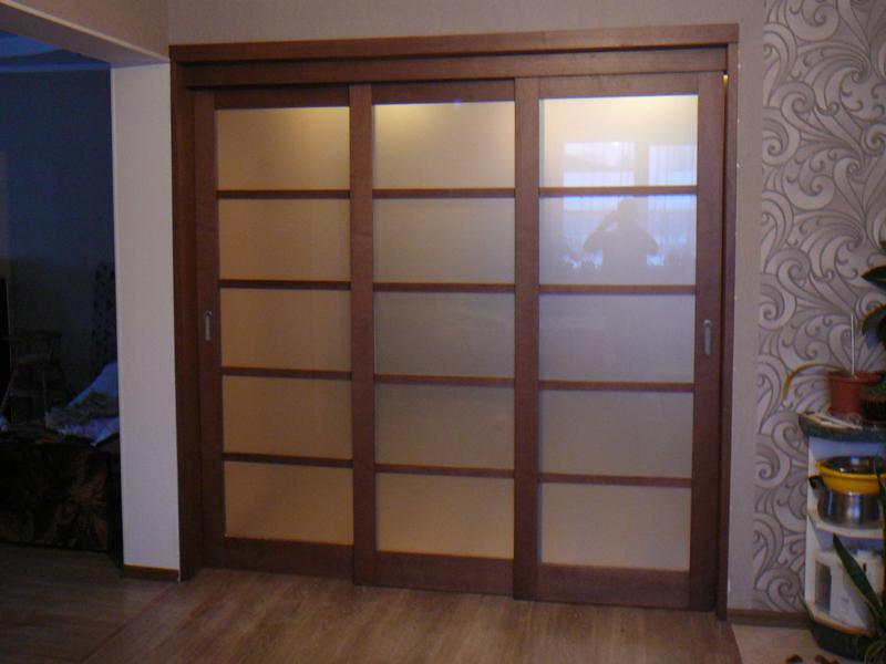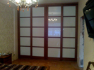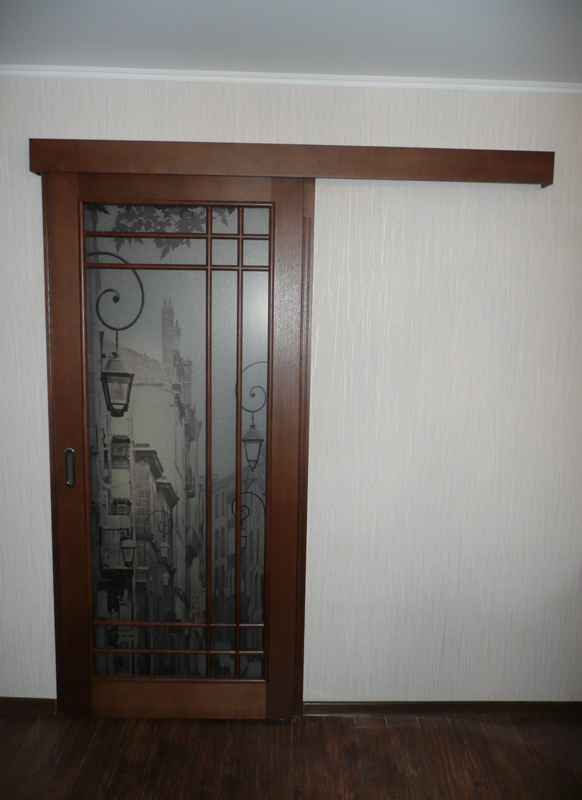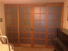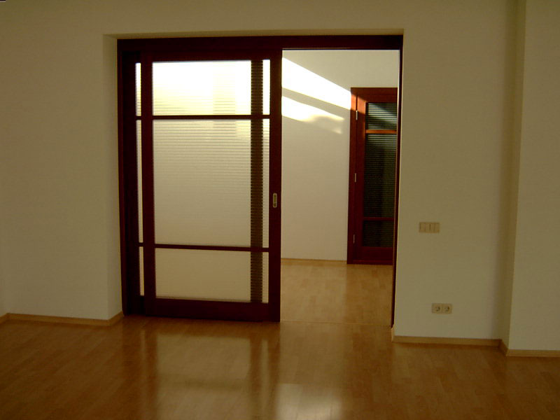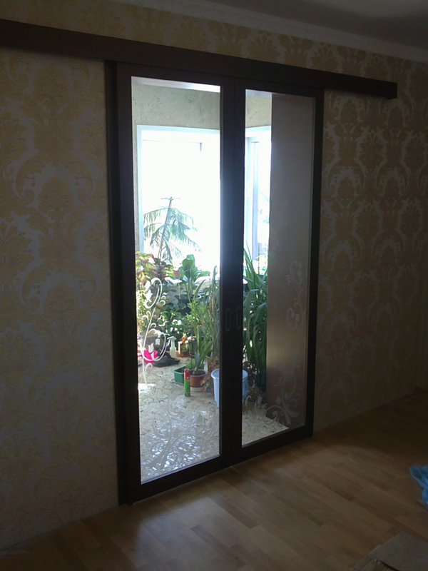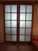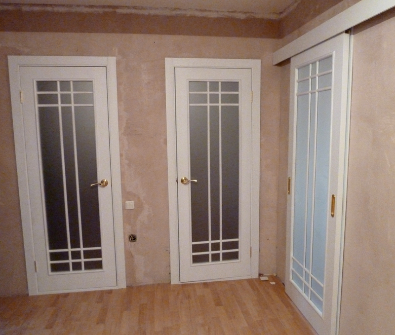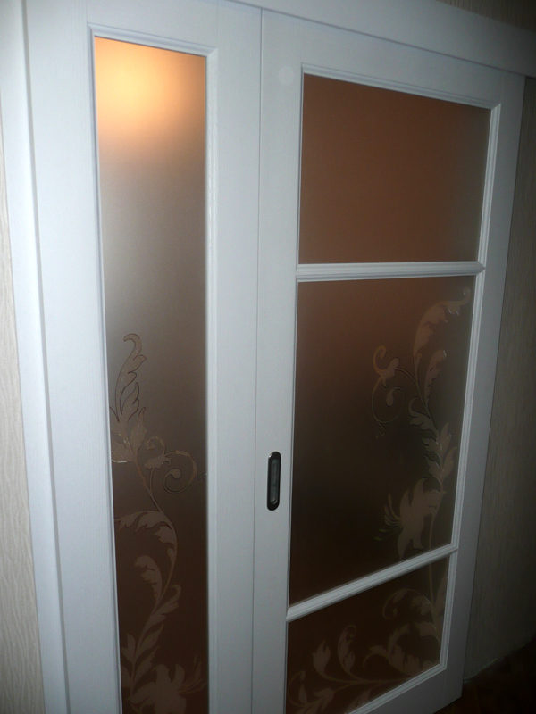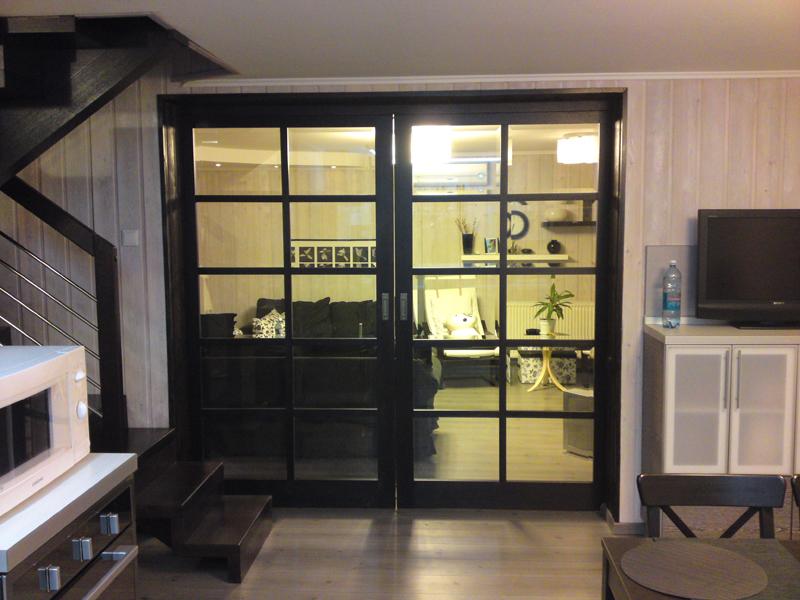 При изготовлении межкомнатных перегородок очень часто используются дверные рамы в виде полотна со стеклянными вставками, которые могут быть как цельными, так и выполненными в виде отдельных элементов, образующих определённую композицию. В качестве материала для деревянных рам чаще всего используются дуб, бук и шпонированная сосна с определённой цветовой тонировкой. В оформлении используется ярко выраженная древесная фактура, а в последнее время особенно популярными стали перегородки в японском стиле.