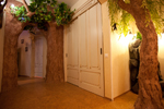 Нередко раздвижные перегородки используются как элемент высококачественного дизайнерского интерьера. Например, довольно распространён приём разделения таким образом кухни и гостиной. Такое решение позволяет за одно мгновение превратить два помещения в одно, особенно актуально это во время проведения шумного праздника с большим количеством гостей, когда большая площадь помещения очень кстати. Помимо этого, перегородки позволяют без лишних усилий создать в квартире отдельную комнату для гардероба. Среди основных преимуществ раздвижных перегородок стоит отметить компактность, в отличие от распашных дверей им для открытия не требуется много свободного пространства.